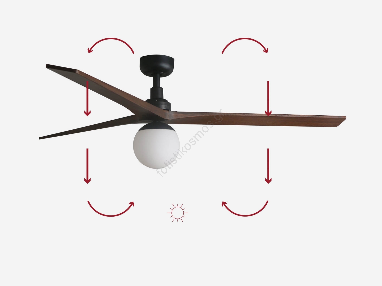 • Τα πτερύγια αυτού του ανεμιστήρα είναι από σκούρο καρυδί.