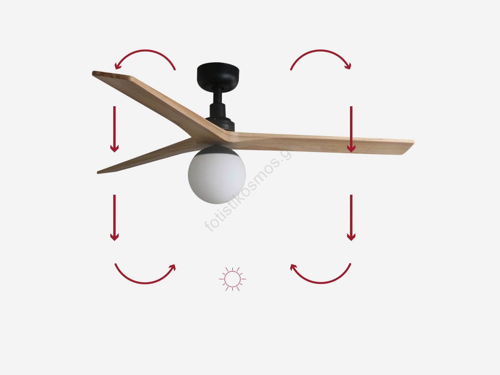 • Αυτός ο ανεμιστήρας διαθέτει λειτουργία αντιστροφής καλοκαίρι-χειμώνας, επιτρέποντάς σας να τον χρησιμοποιείτε και το χειμώνα (εξοικονόμηση έως 20% στα έξοδα θέρμανσης).