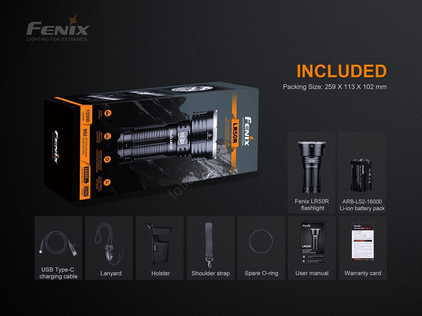 Fenix LR50R - Επαναφορτιζόμενος φακός LED 4xLED / USB IP68 12000 lm 58 ώρες | Fotisti kosmos