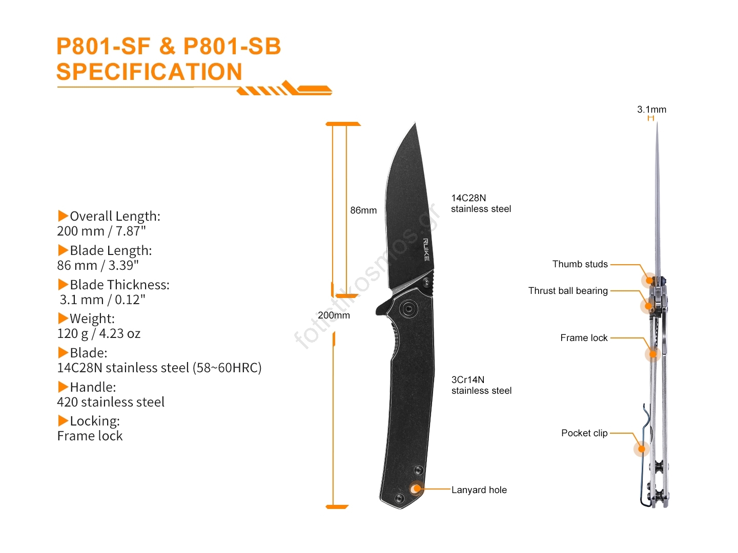 • Πάχος λεπίδας: 3,1 mm.