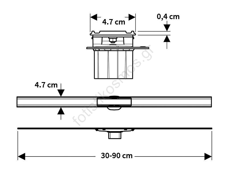• Το μήκος του καναλιού είναι 900 mm και είναι κατασκευασμένο από βουρτσισμένο ανοξείδωτο ατσάλι.