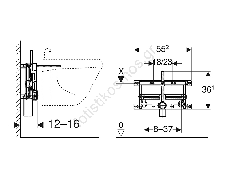 Geberit 457.530.00.1 - Εντοιχιζόμενο πλαίσιο για μπιντέ Kombifix Universal