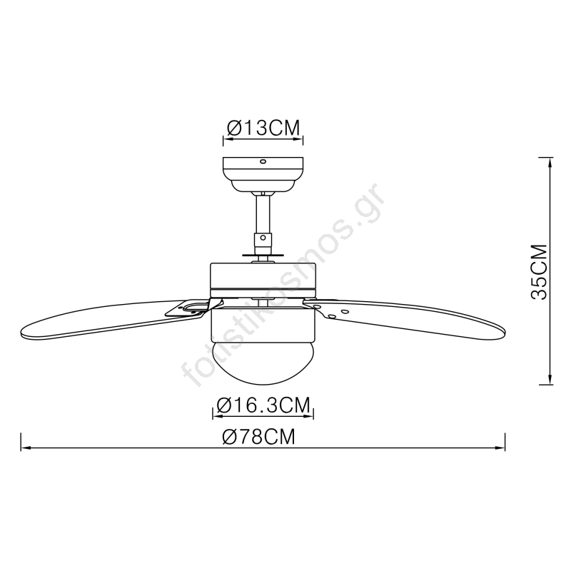 • Οροφός ανεμιστήρας με έλεγχο αλυσίδας.