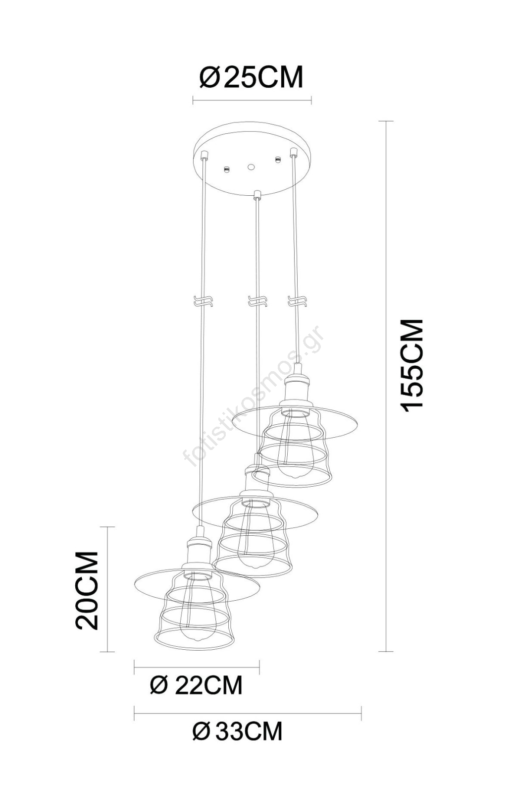 Globo 15086-3H - Κρεμαστό φωτιστικό οροφής VIEJO 3xE27/60W/230V | Fotisti kosmos
