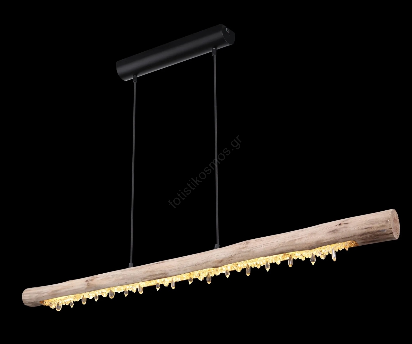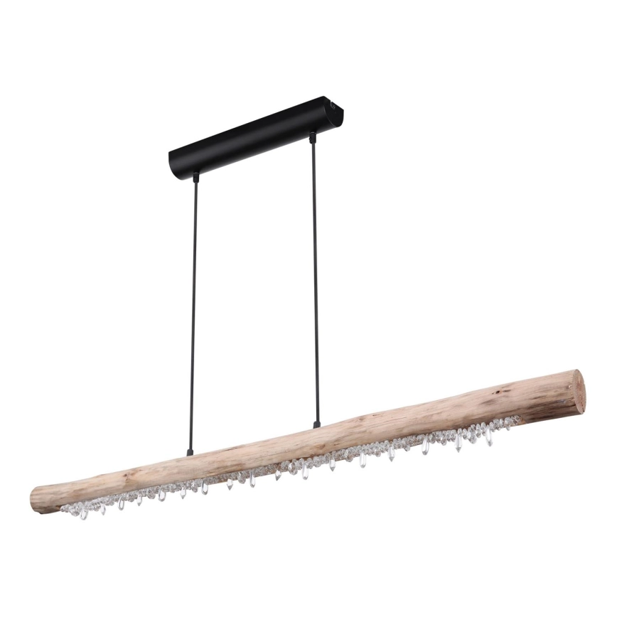 • Κρεμαστό φωτιστικό με καλώδιο συνδυάζει ένα φυσικό ξύλινο δοκάρι κρεμασμένο από μαύρα καλώδια με κομψά ακρυλικά κρύσταλλα που θα τραβήξουν τα βλέμματα κάθε επισκέπτη.