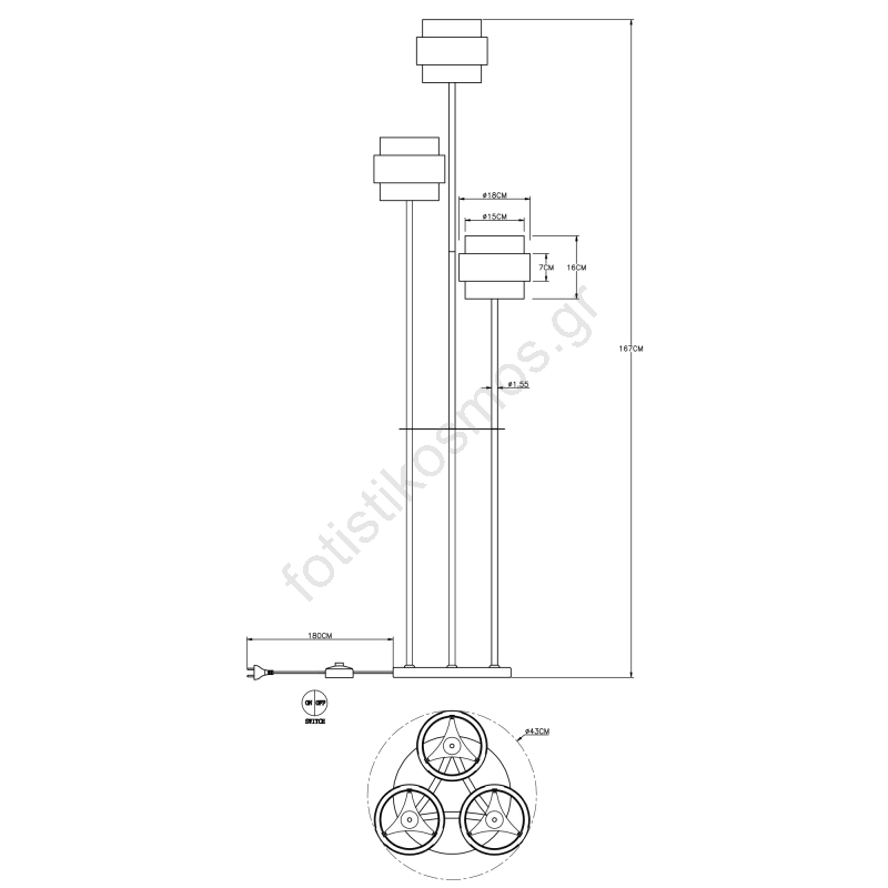 Globo 15560S - Επιδαπέδιο φωτιστικό MILLEY 3xE27/60W/230V | Fotisti kosmos