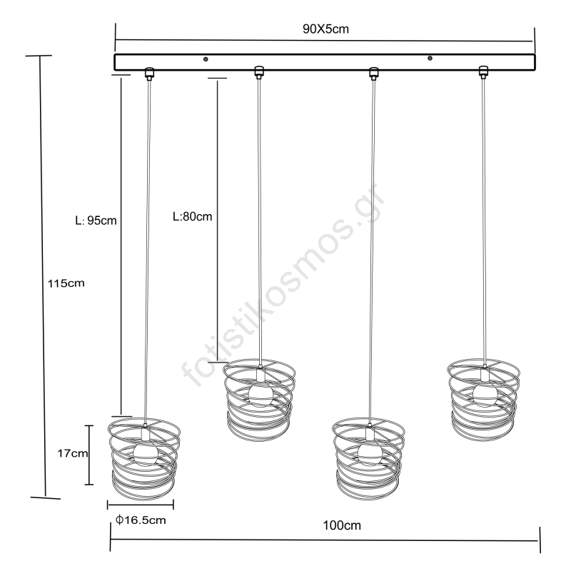 Globo 15640-4H - Κρεμαστό φωτιστικό με καλώδιο TILLY 4xE27/60W/230V, μαύρο | Fotisti kosmos