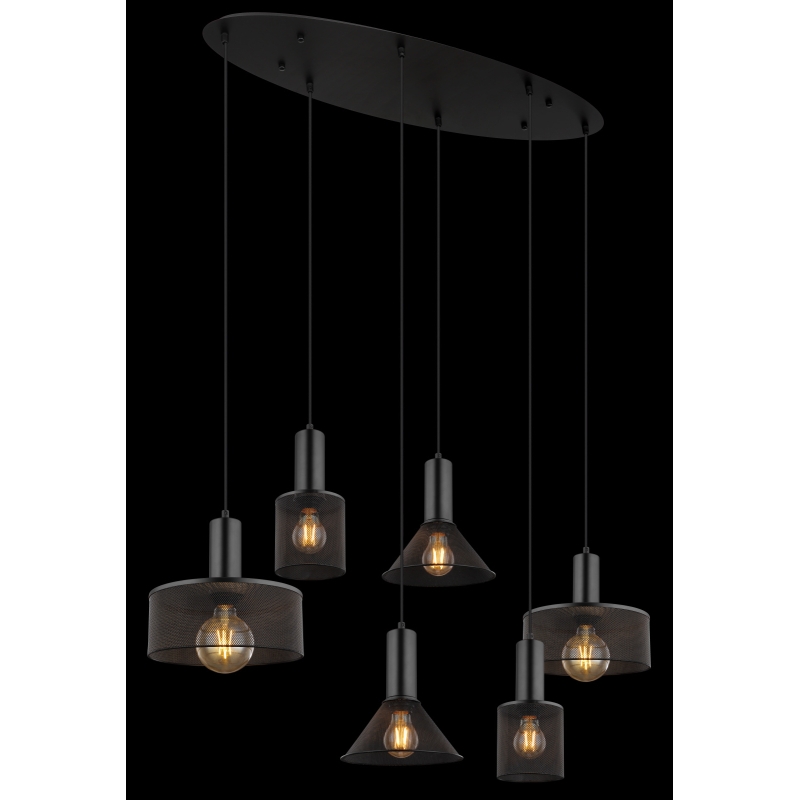 Globo 15648-6H - Κρεμαστό φωτιστικό με καλώδιο JEDD, 6xE27/60W/230V, μαύρο | Fotisti kosmos