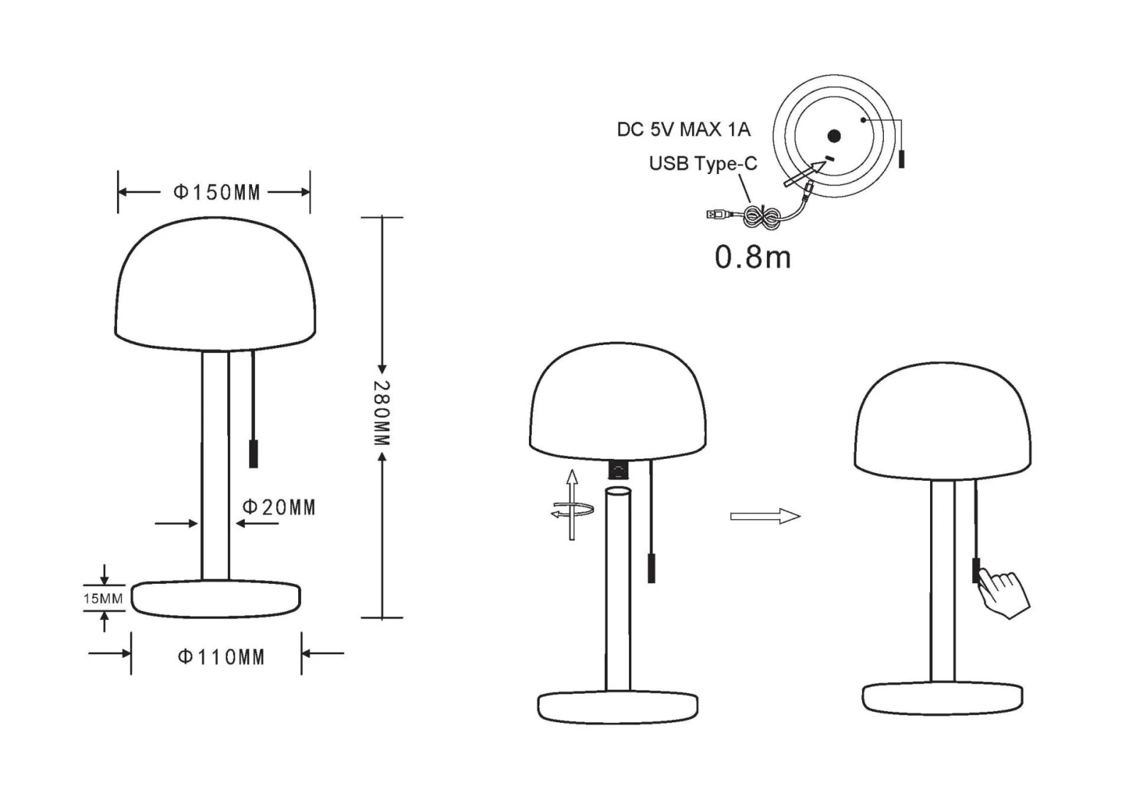 • Globo - LED Επαναφορτιζόμενο Επιτραπέζιο φωτιστικό LED/1,5W/3,7V 3000/4200/6000K 1800mAh μαύρο