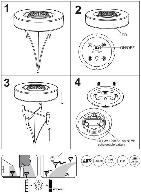 Globo 36414-2 - ΣΕΤ 2x Ηλιακά φωτιστικά LED SOLAR LED/0,8W/3V 3200K IP44 | Fotisti kosmos