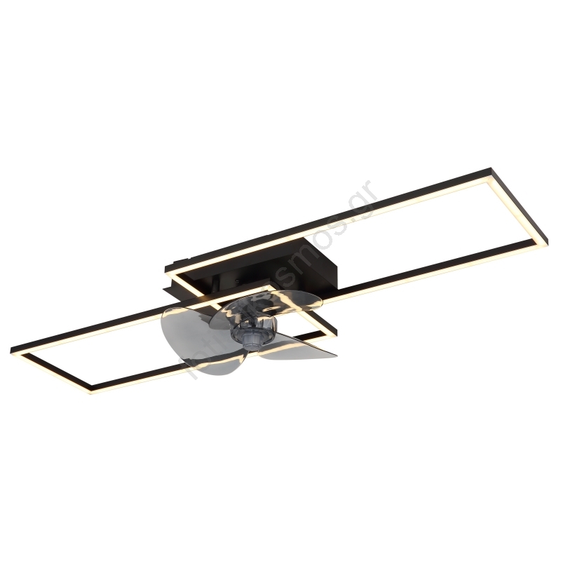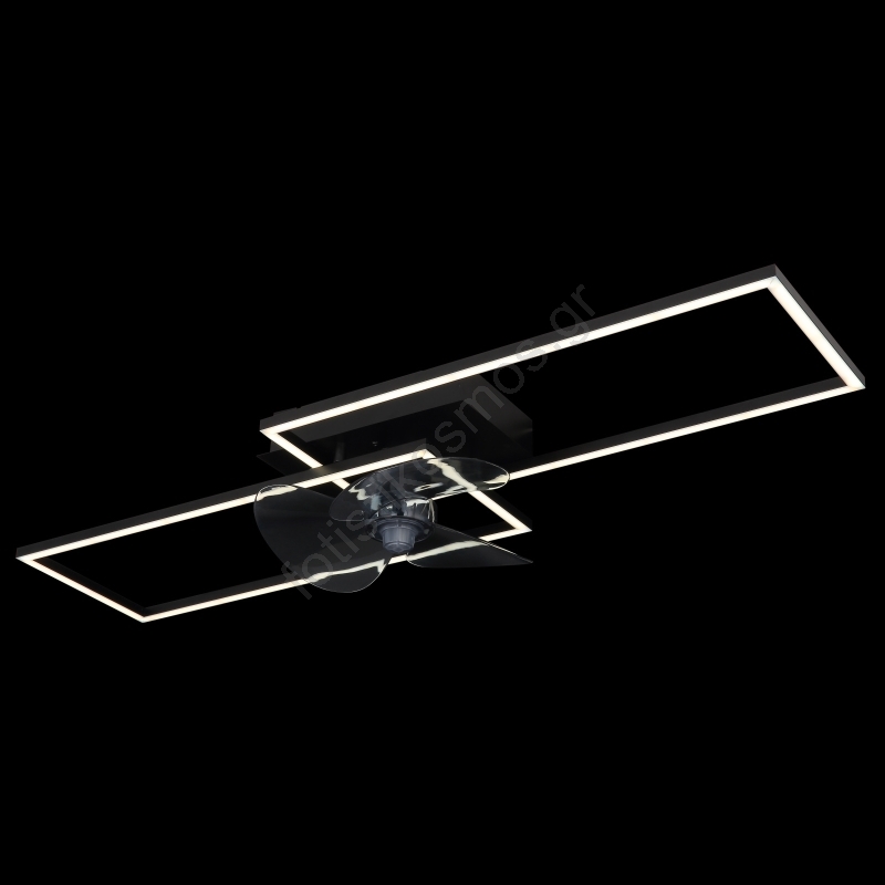 • Κομψός ανεμιστήρας οροφής σε ματ μαύρο με οπαλ στοιχεία.