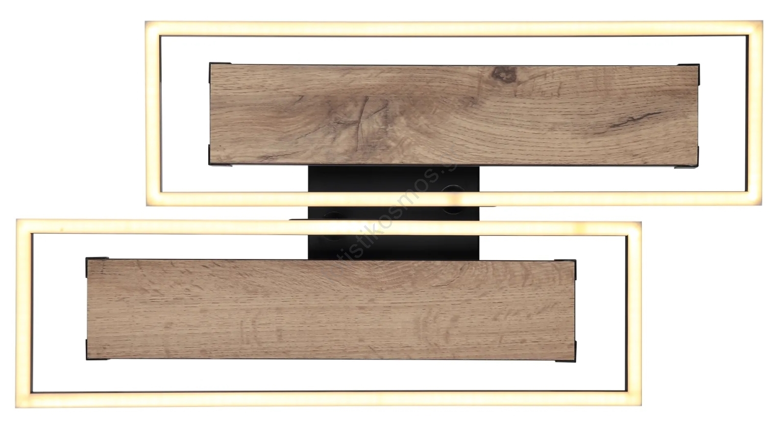 • Το φωτιστικό οροφής συνδυάζει ματ μαύρο μέταλλο, MDF με εμφάνιση σκούρου ξύλου, αλουμίνιο και οπάλιο πλαστικό.