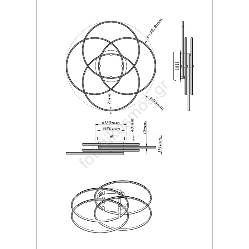 Globo 67355-55N -Φωτιστικό οροφής LED KOMBOS LED/55W/230V διάμετρος 51,5 cm ματ χρώμιο | Fotisti kos
