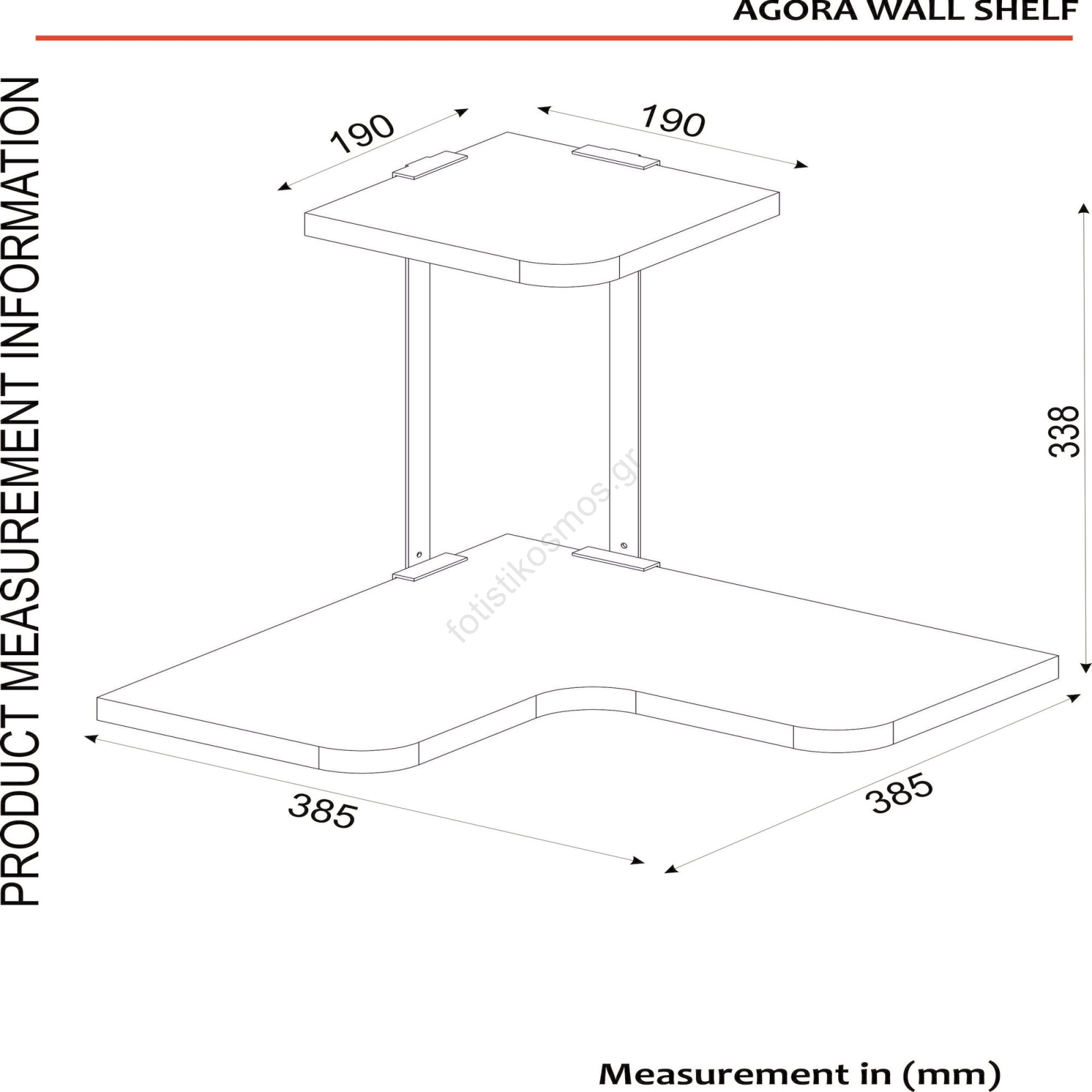 • Διαστάσεις άνω ραφιού: 19 x 19 εκ.