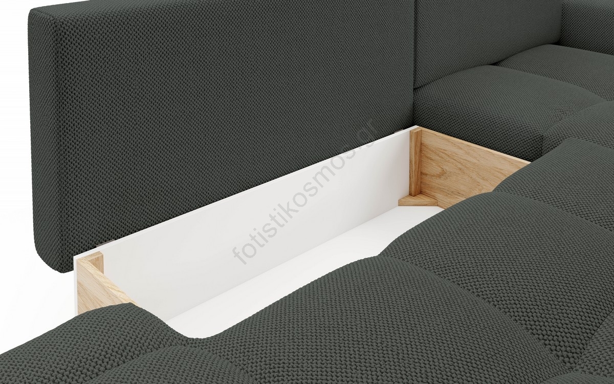 • Γωνιακή επενδεδυμένη σύνθεση καθιστικού ALMADA σε σχήμα Γ, αναδιπλούμενη με αποθηκευτικό χώρο, δεξιά, γκρι