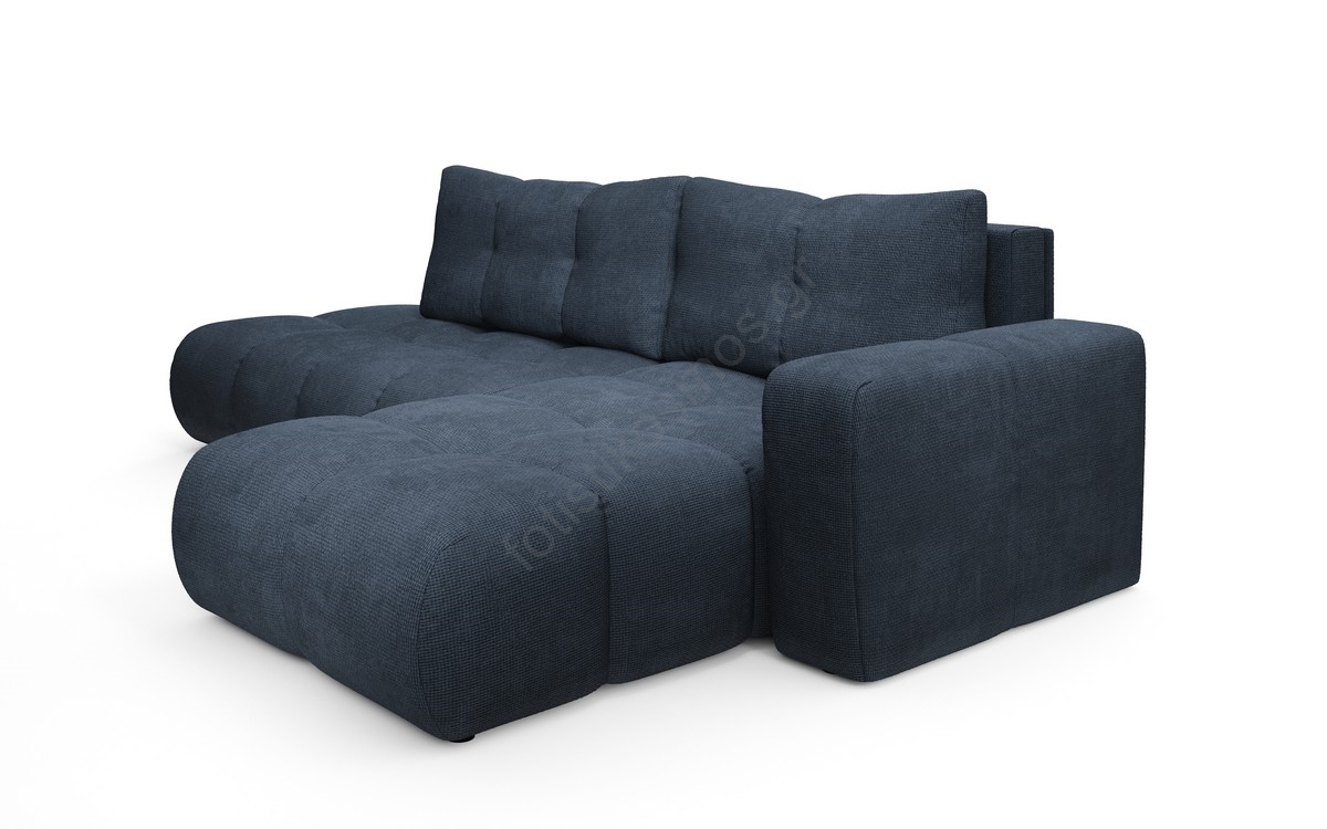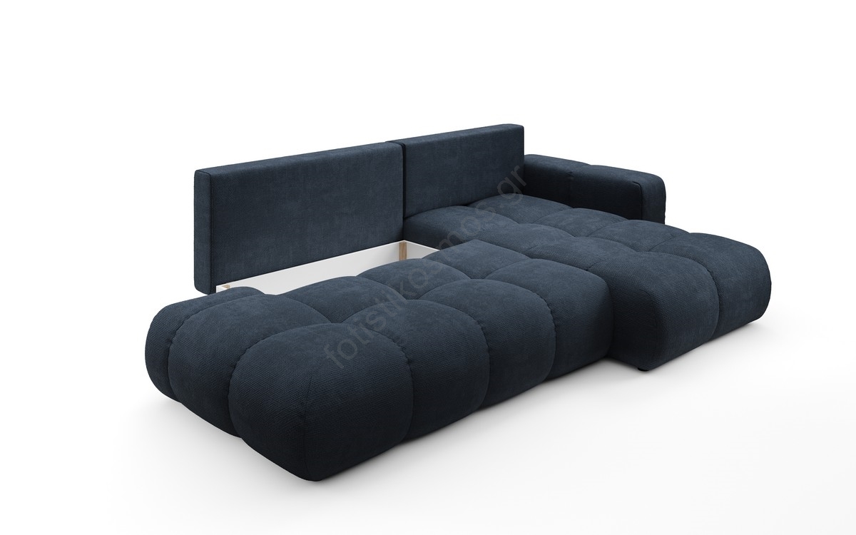 • Αναδιπλούμενη γωνιακή επενδυμένη σύνθεση καθιστικού σε σχήμα L ALMADA, δεξιά, μπλε, με αποθηκευτικό χώρο