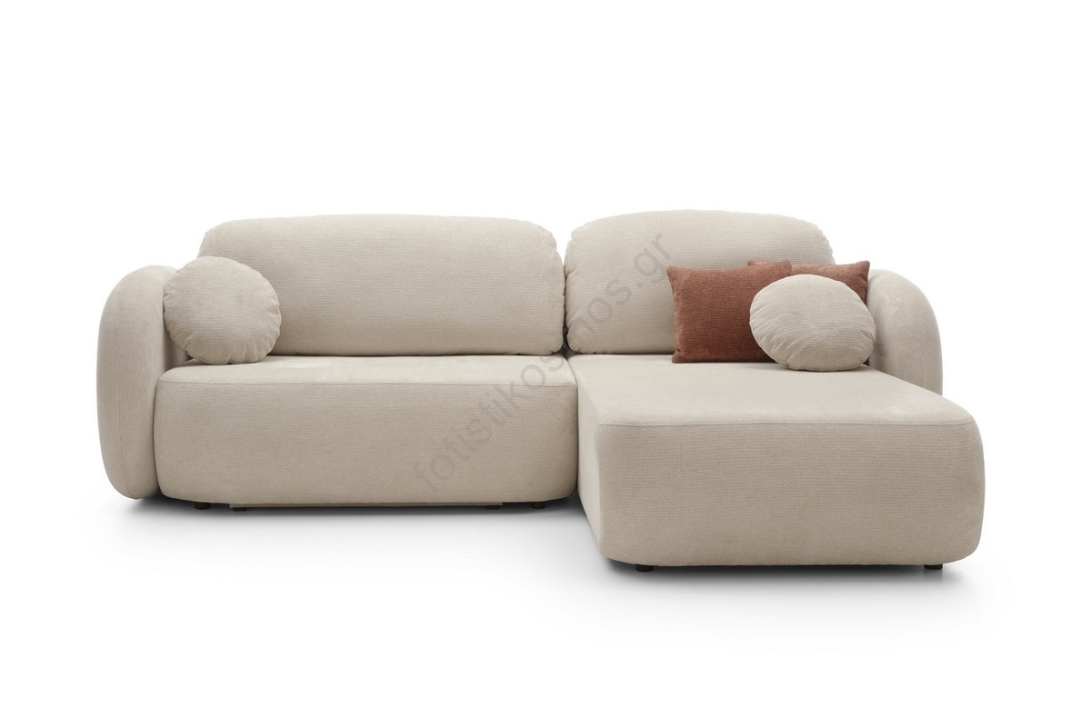 Γωνιακός καναπές-κρεβάτι με αποθηκευτικό χώρο σε σχήμα Γ OLBIA, δεξιά, μπεζ | Fotisti kosmos