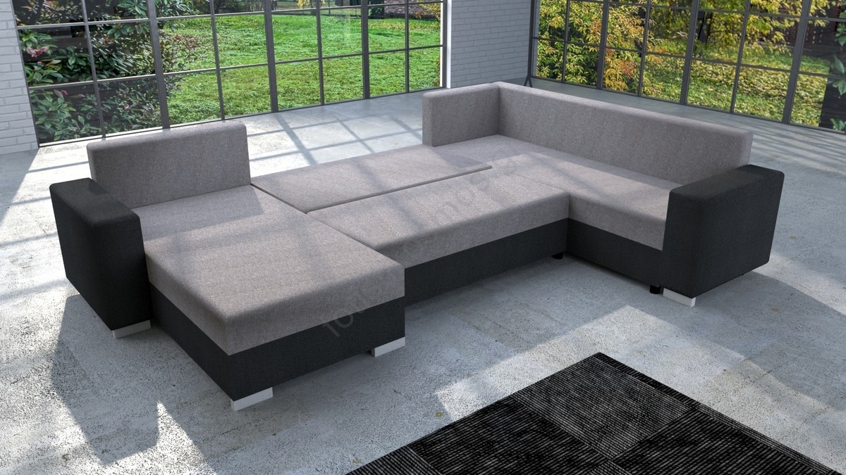 Ταπετσαρισμένος πολυλειτουργικός γωνιακός καναπές-κρεβάτι σε σχήμα U YORK γκρι/μαύρο | Fotisti kosmo