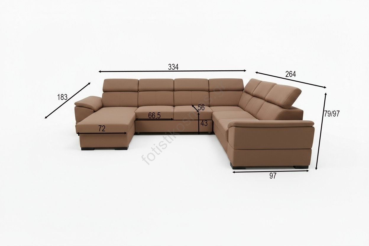 • Ευρύχωρος γωνιακός καναπές σε σχήμα U προσφέρει τόσο άνεση όσο και κομψό σχεδιασμό.