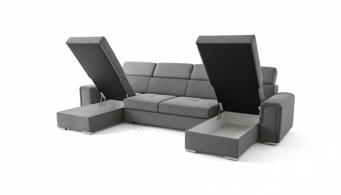Καναπές-κρεβάτι SALVADA σε σχήμα U με ευέλικτη αναστρέψιμη γωνία και αποθηκευτικό χώρο, σκούρο γκρι