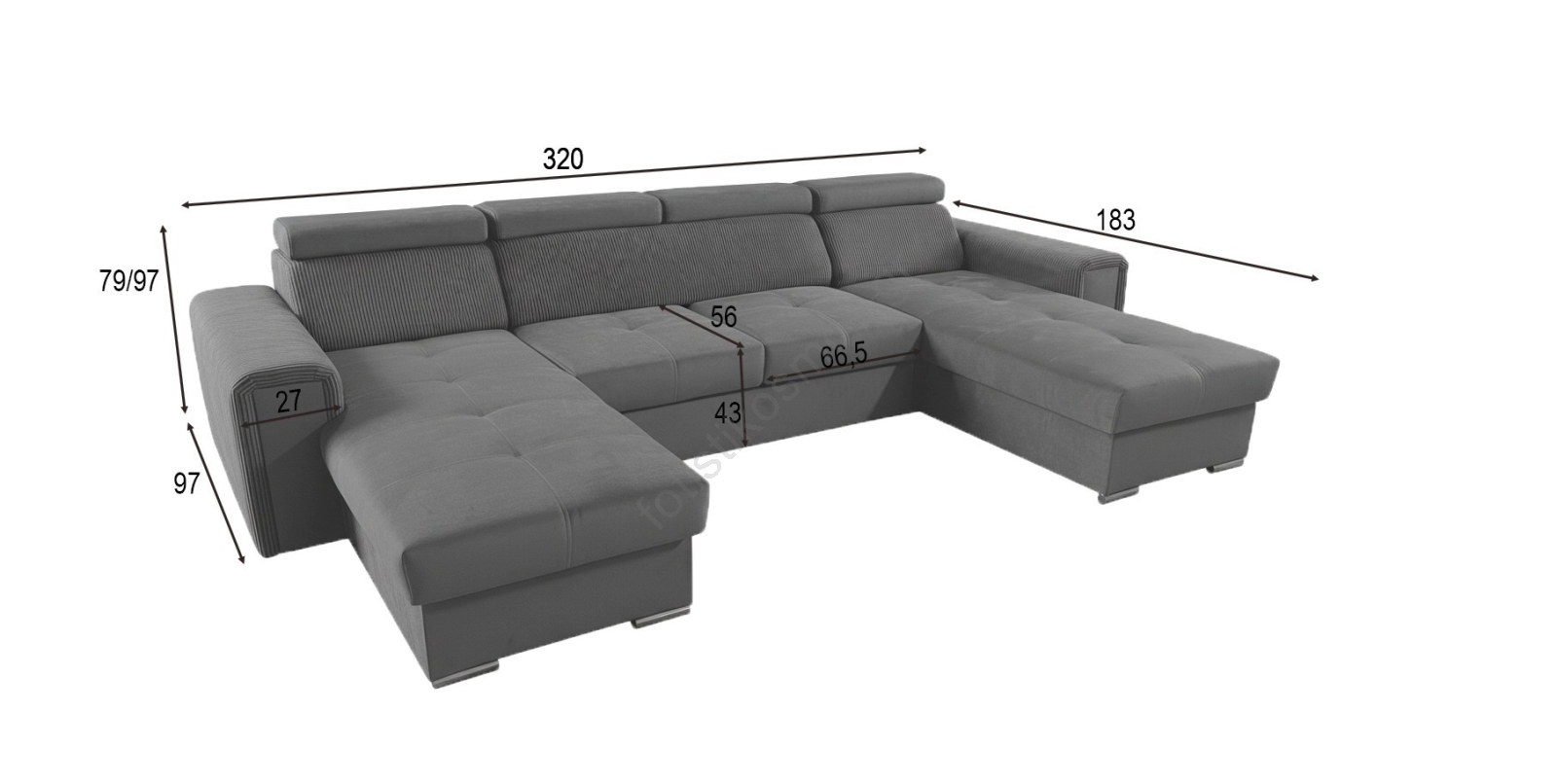 • Ευρύχωρος γωνιακός καναπές σε σχήμα U προσφέρει άνεση και κομψό σχεδιασμό.