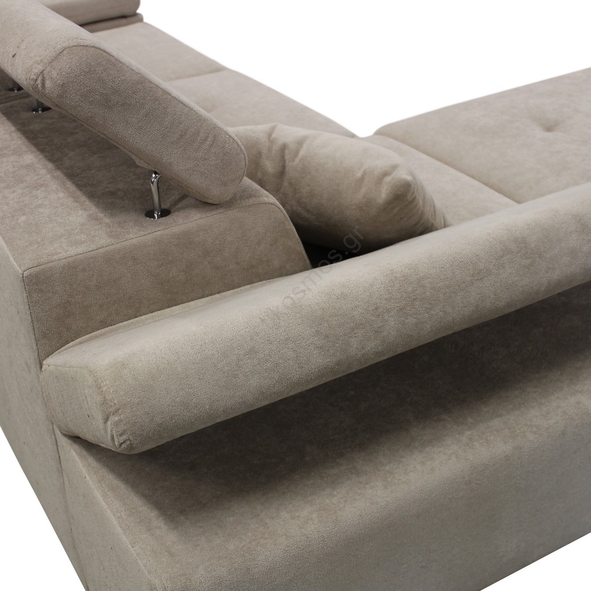 • Αναδιπλούμενος γωνιακός καναπές CASTELO σε σχήμα L με αποθηκευτικό χώρο, δεξιός, μπεζ