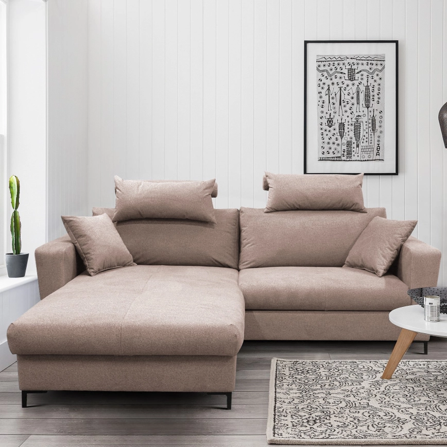 • Αναδιπλούμενος γωνιακός καναπές-κρεβάτι HORTA L-σχήματος, αριστερή σύνθεση, ροζ, με αποθηκευτικό χώρο