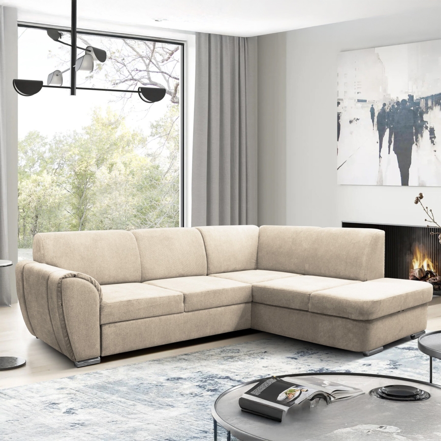 Αναδιπλούμενος γωνιακός καναπές σε σχήμα L SERPA με αποθηκευτικό χώρο, δεξιά, μπεζ