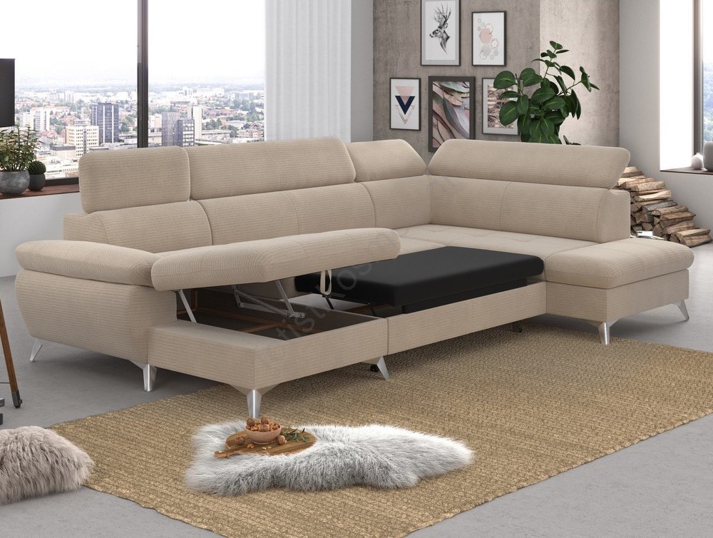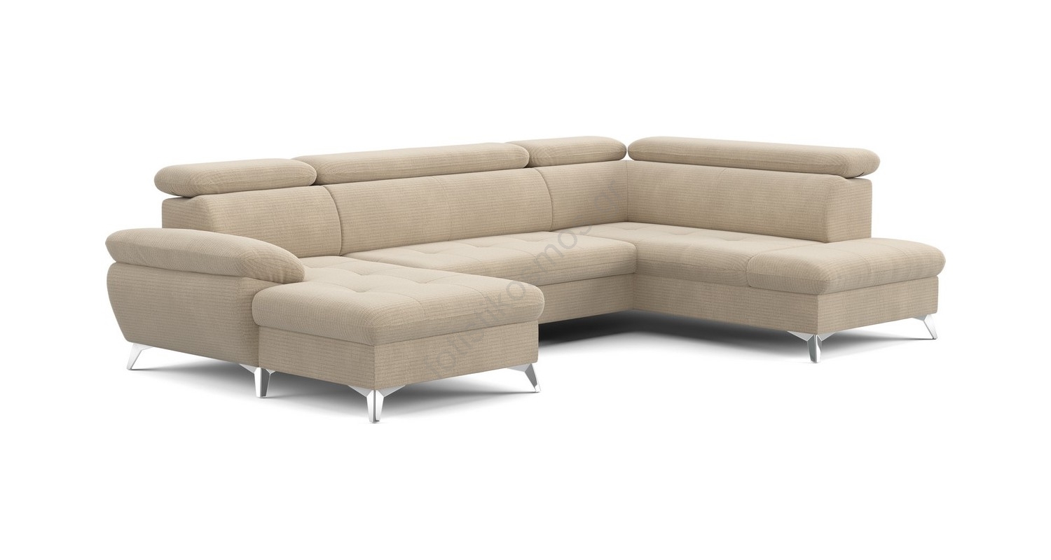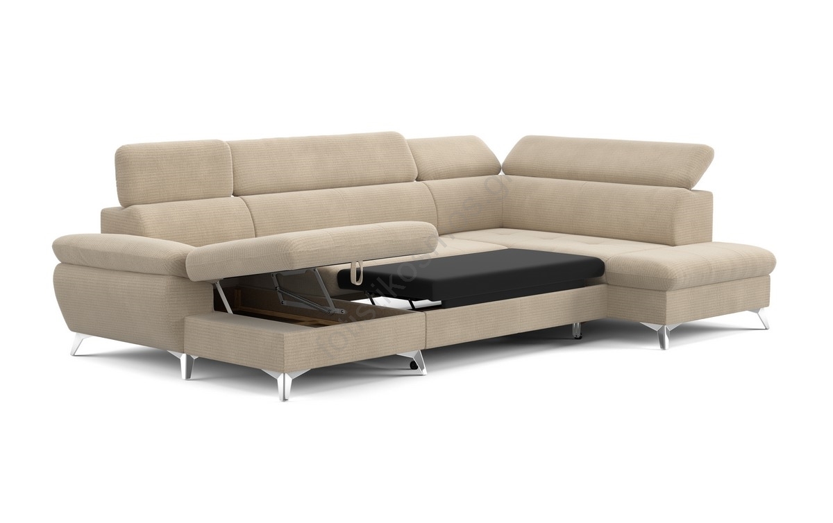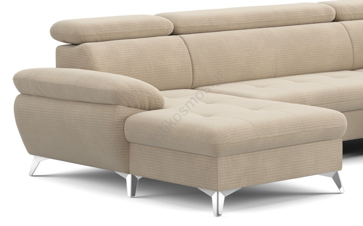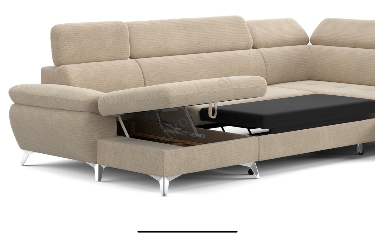 • Ανακλινόμενος γωνιακός καναπές σχήματος U CATANIA αριστερή πλευρά με αποθηκευτικό χώρο, μπεζ
