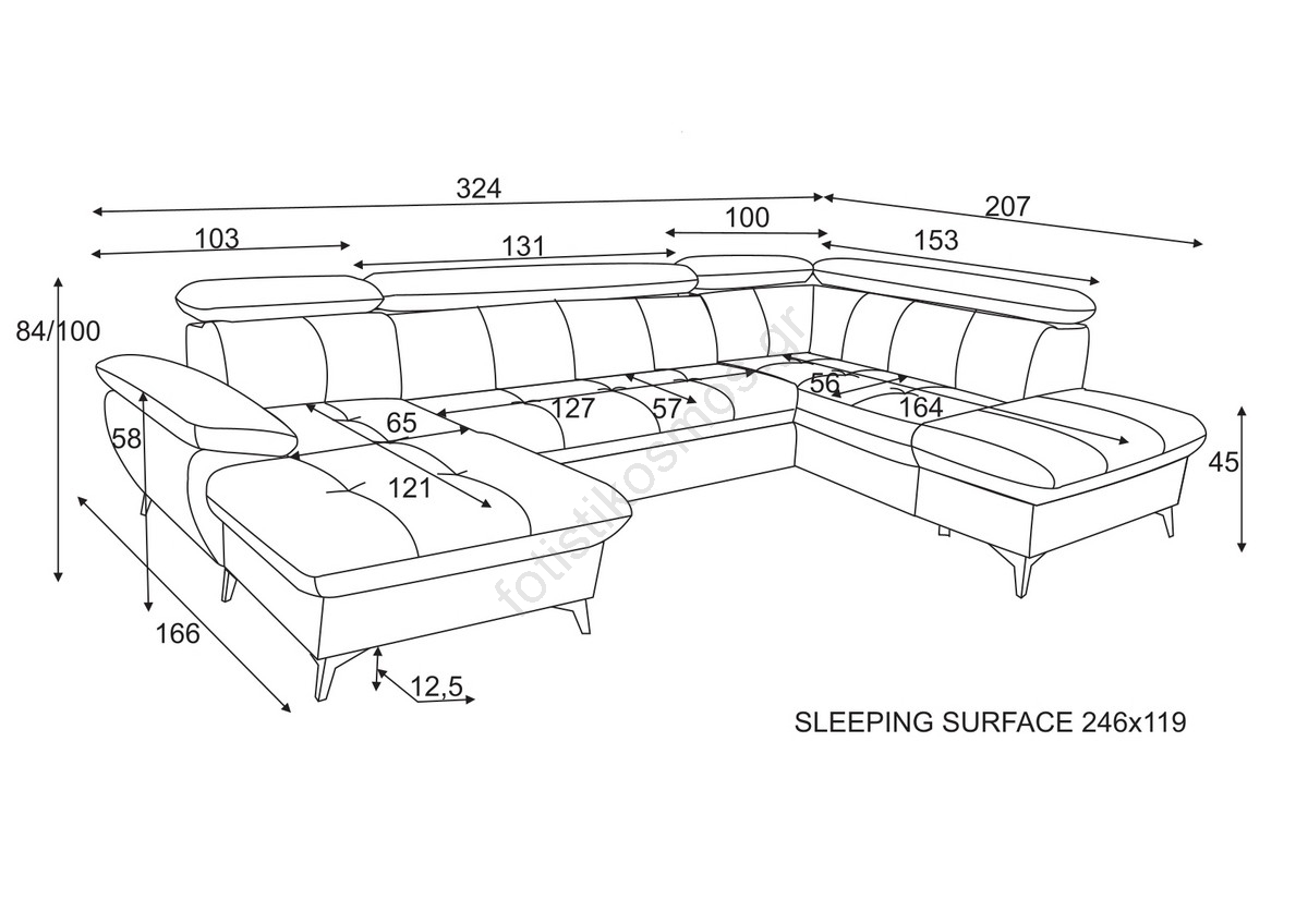 • Ο καναπές έχει σχεδιαστεί με πλάτη ύψους 100 εκ., προσφέροντας εξαιρετική στήριξη για την πλάτη και το κεφάλι.
