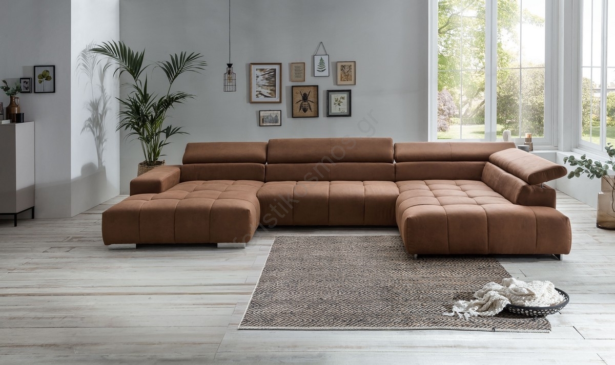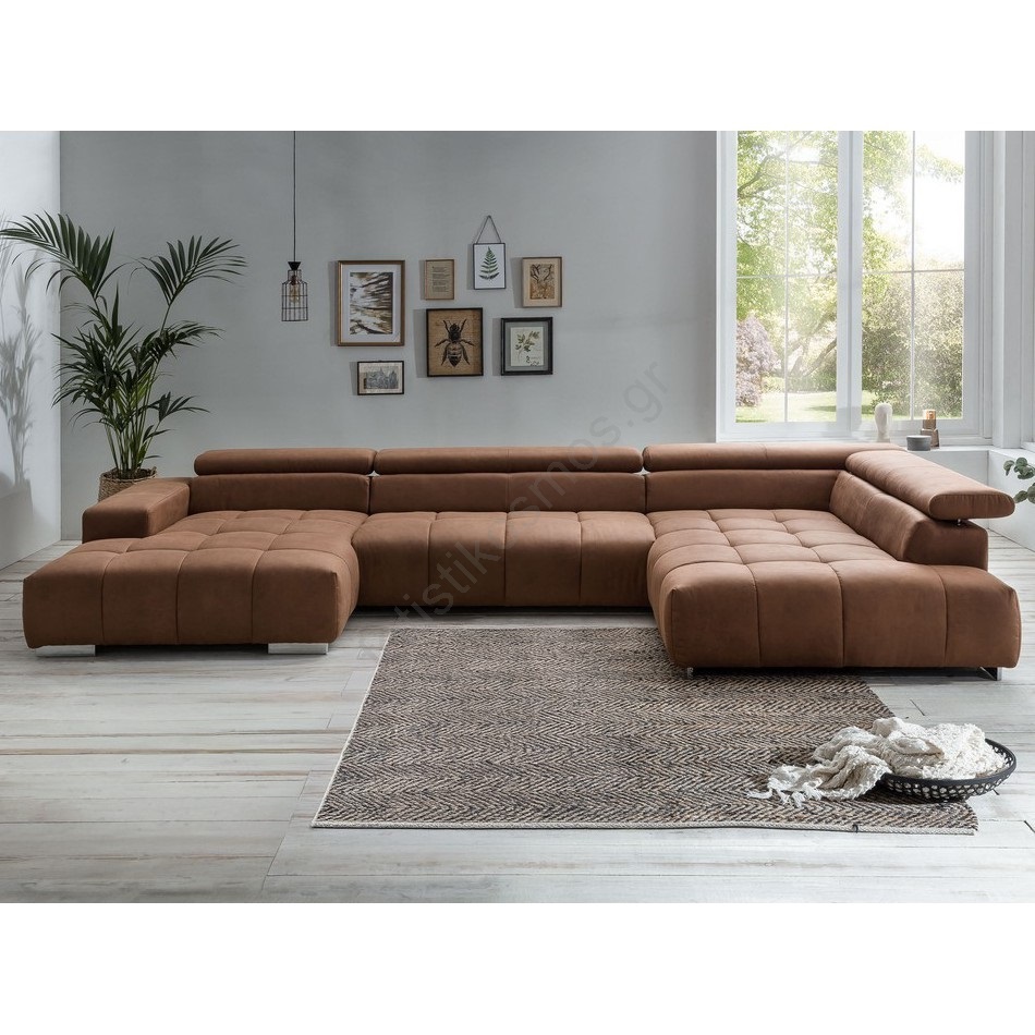 Γωνιακός καναπές σε σχήμα U TROPEA δεξιά καφέ | Fotisti kosmos