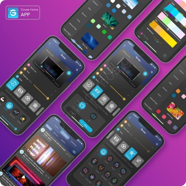 • Διαχειριστείτε εύκολα τις ρυθμίσεις χρωμάτων και έντασης φωτός μέσω της εφαρμογής Govee Home (συμβατή με iOS και Android).