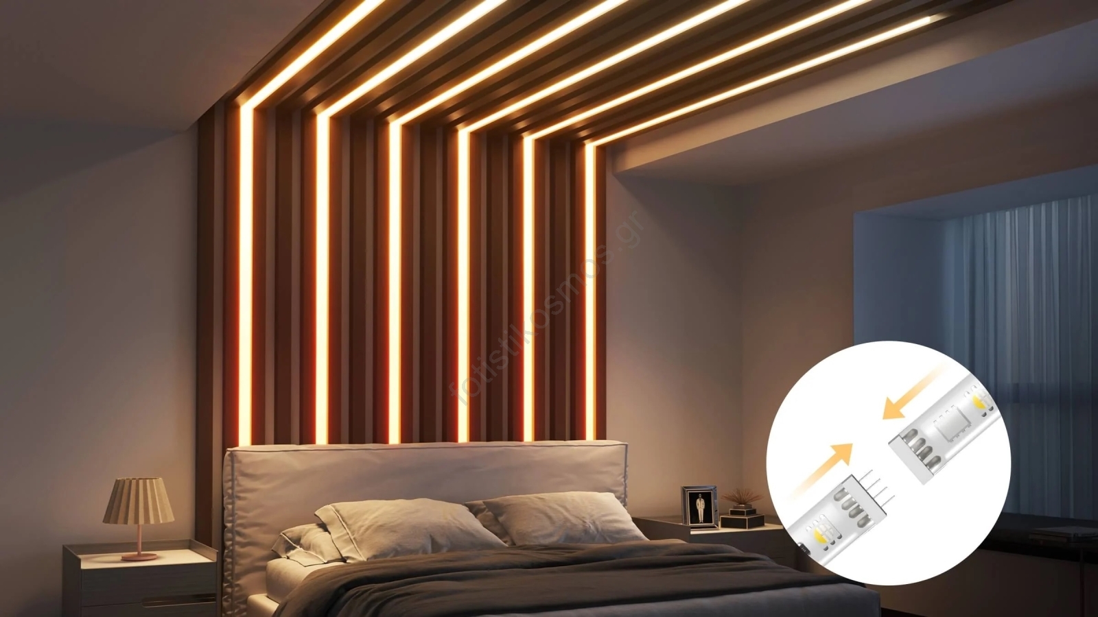 • Οι LED ταινίες τοποθετούνται εύκολα με αυτοκόλλητες ταινίες 3M που βρίσκονται στην πίσω πλευρά.
