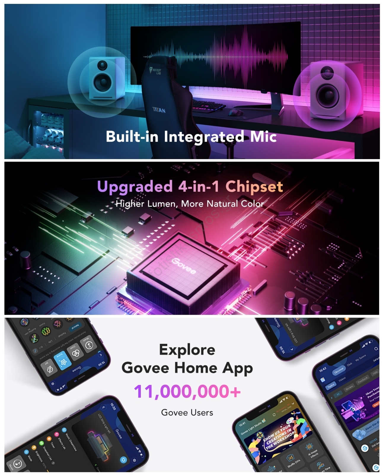 • Χάρη στην τεχνολογία RGBICW+ 4 σε 1, προσφέρει πιο φωτεινά και πλούσια χρώματα.