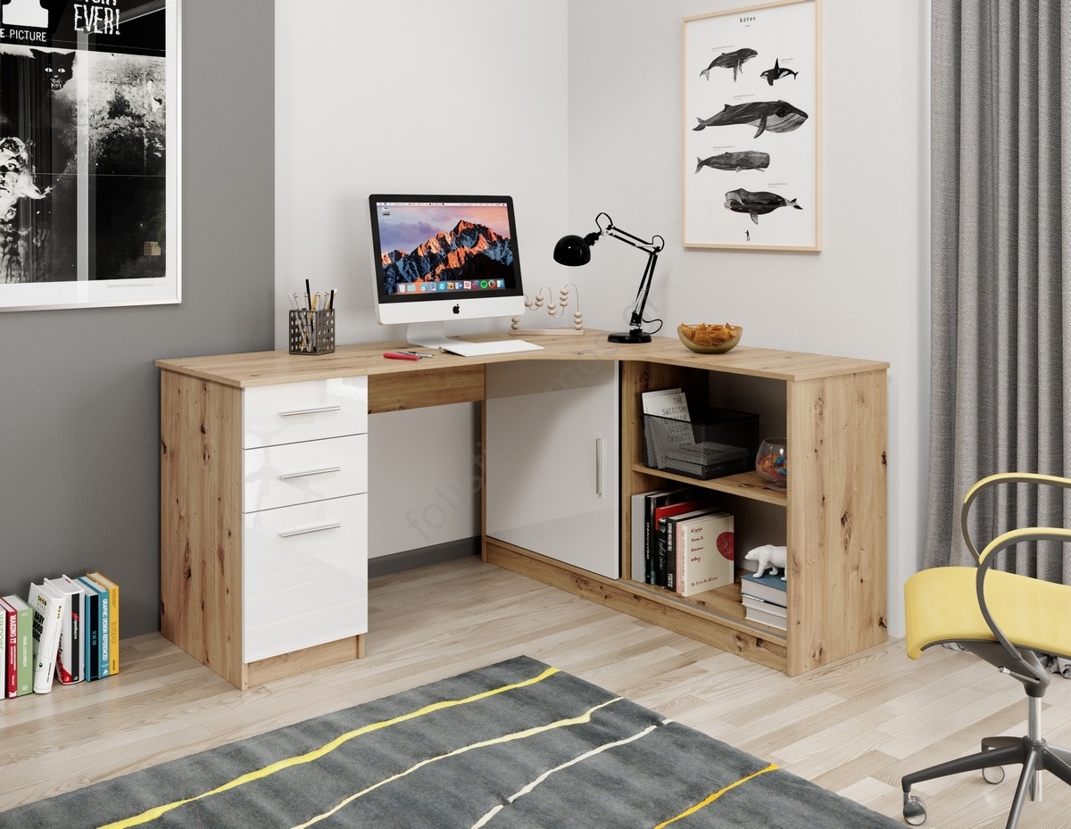 Γραφείο με ράφι και συρτάρια ROBERTO δεξιό δρυς artisan/λευκό