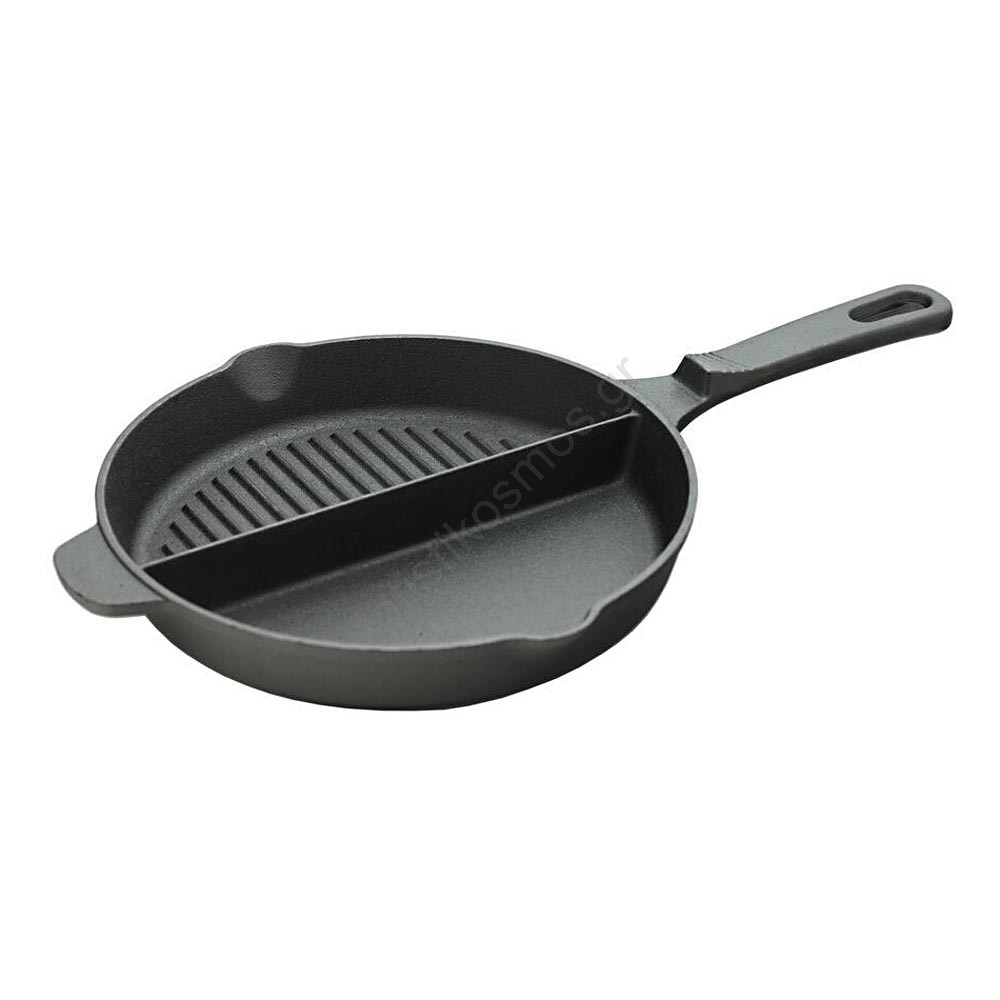 • Τηγάνι ψησίματος από χυτοσίδηρο διαμέτρου 25 εκ. με δύο ξεχωριστούς χώρους για την προετοιμασία φαγητών.