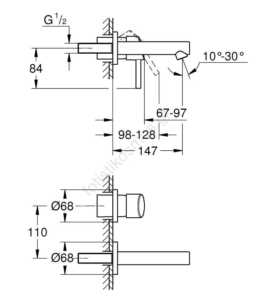 • Απαιτείται εγκατάσταση με εντοιχιζόμενο σώμα 23 571 000 ή 32 635 000 (δεν περιλαμβάνεται στη συσκευασία).