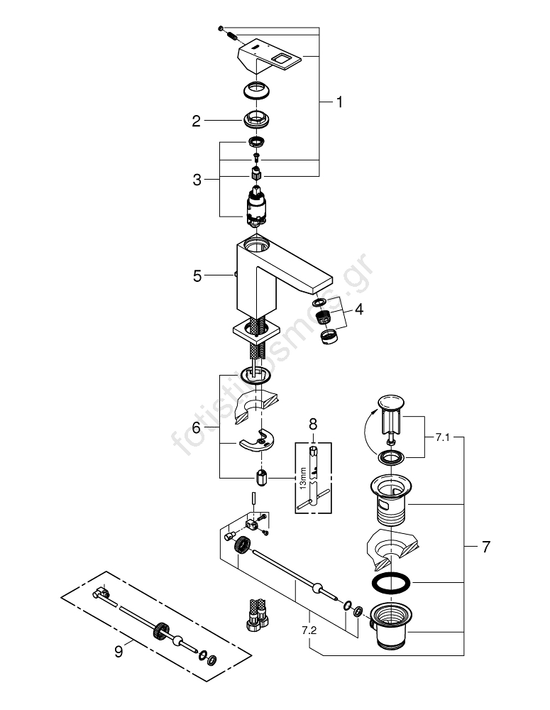 GROHE 23445AL0 - Μπαταρία νιπτήρα EUROCUBE μέγεθος M γραφίτης | Fotisti kosmos