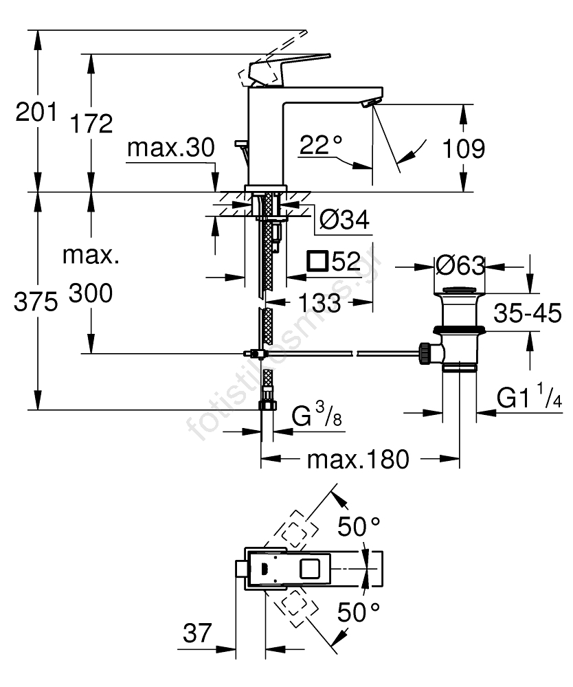 • Συμπεριλαμβάνεται σετ αποχέτευσης 1 1/4" για ολοκληρωμένη λύση.