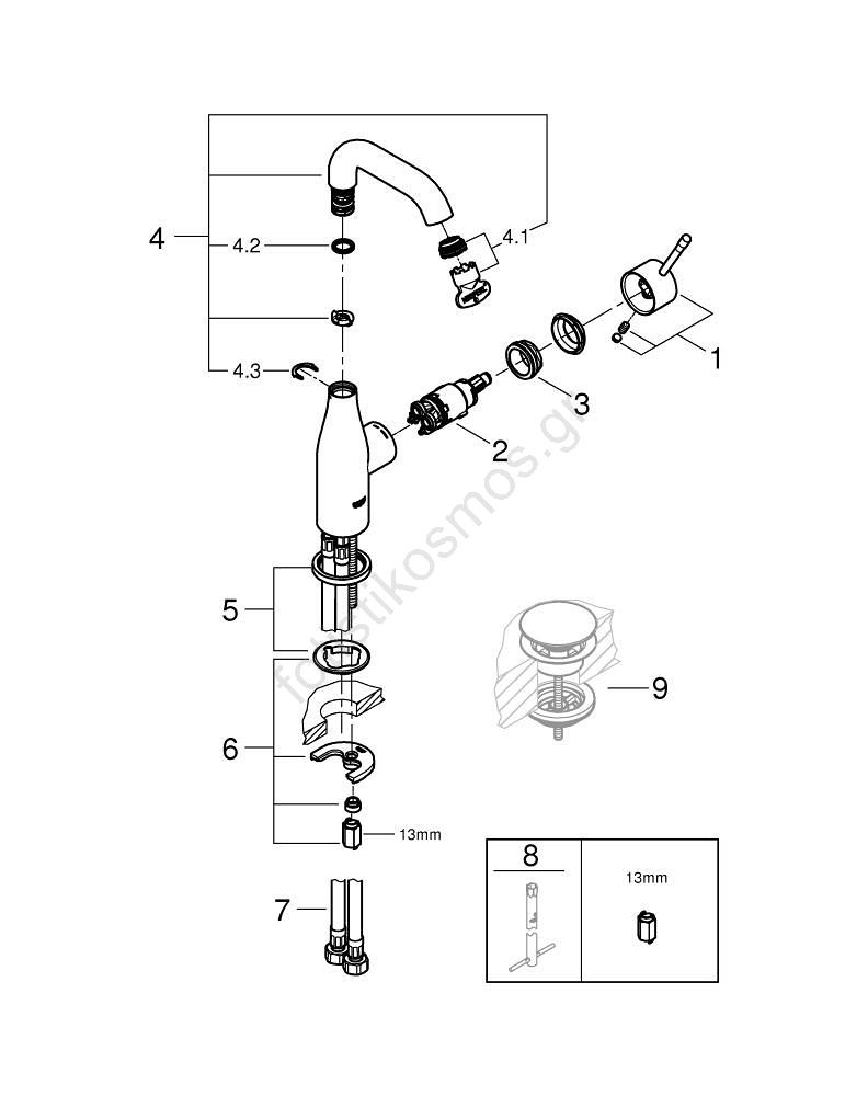 GROHE 23463001 - Μπαταρία νιπτήρα ESSENCE μέγεθος M γυαλιστερό χρώμιο | Fotisti kosmos