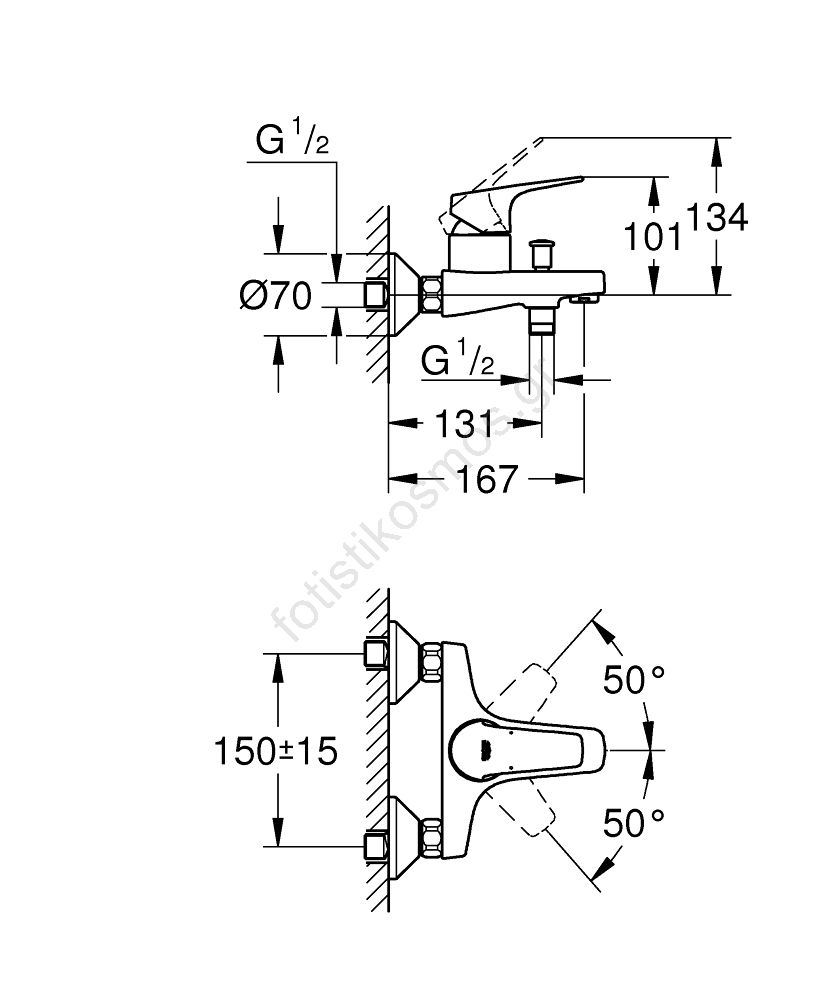 GROHE 23772000 - Μπαταρία μπανιέρας START FLOW 150 mm γυαλιστερό χρώμιο