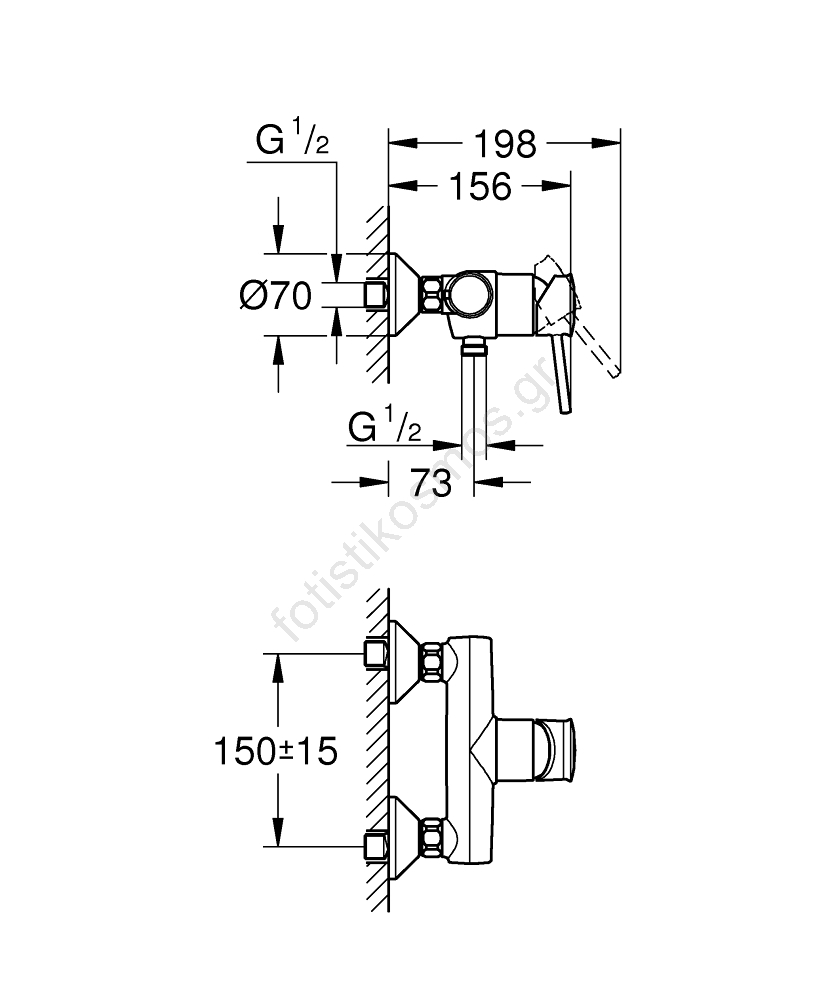 • Επιτοίχια μπαταρία ντους με μοχλό για εύκολη εγκατάσταση.