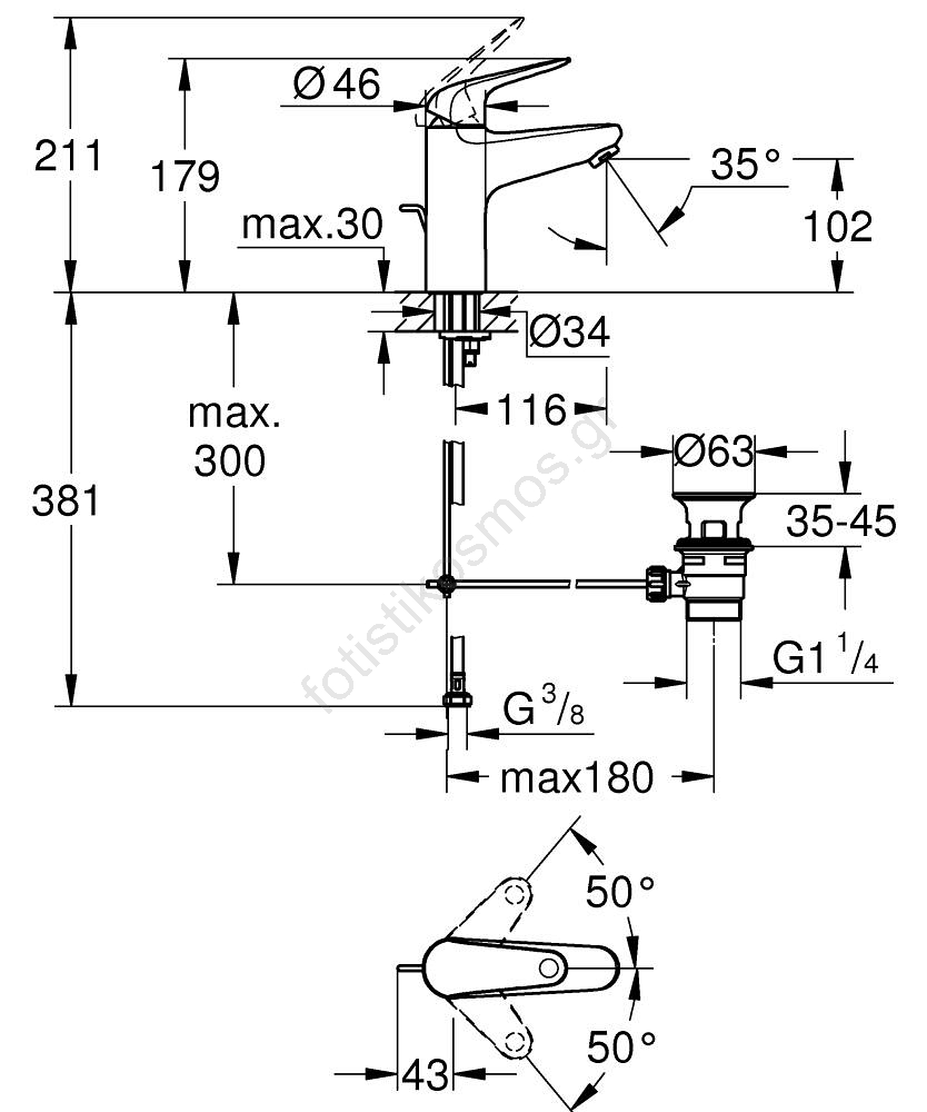 Grohe, Βρύσες, Μάρκες, Μπάνιο, Μπαταρίες Μπάνιου, Μπαταρίες Νιπτήρα