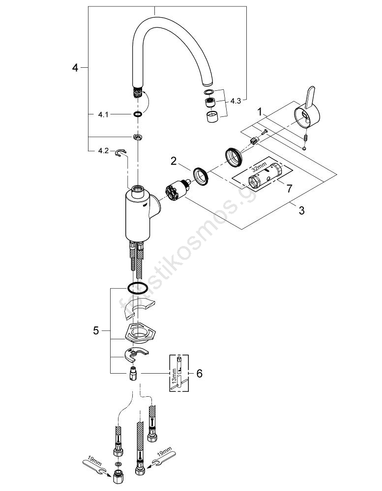 GROHE 31180000 - Μπαταρία κουζίνας EUROSMART COSMOPOLITAN σε γυαλιστερό χρώμιο | Fotisti kosmos