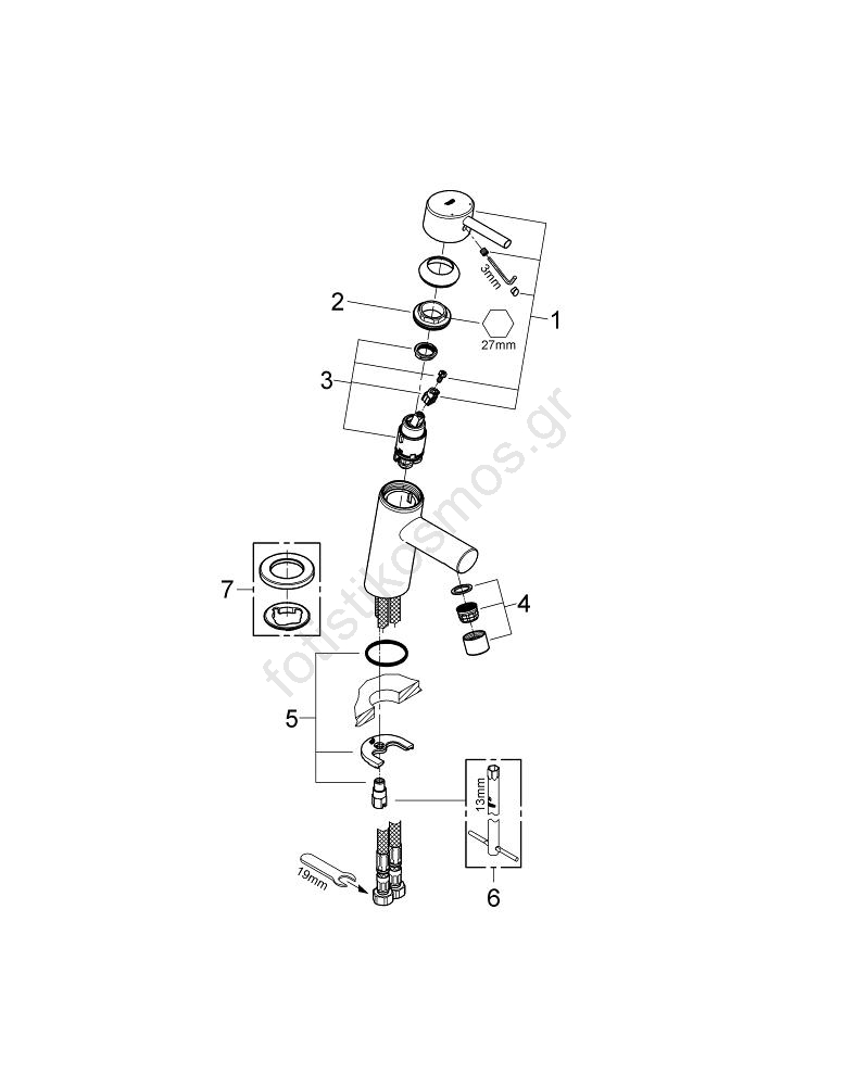 • Μοντέρνα μπαταρία νιπτήρα με μοχλό GROHE Concetto, μέγεθος S, για εγκατάσταση σε μία οπή.