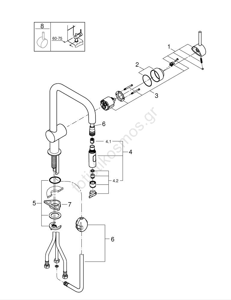 • Η τεχνολογία GROHE EasyDock επιτρέπει την εύκολη επανατοποθέτηση και την ομαλή ασφάλιση της αποσπώμενης κεφαλής ψεκασμού.