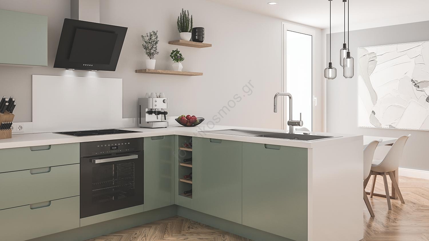 • Κομψή U-εκροή για μοντέρνα εμφάνιση στην κουζίνα.