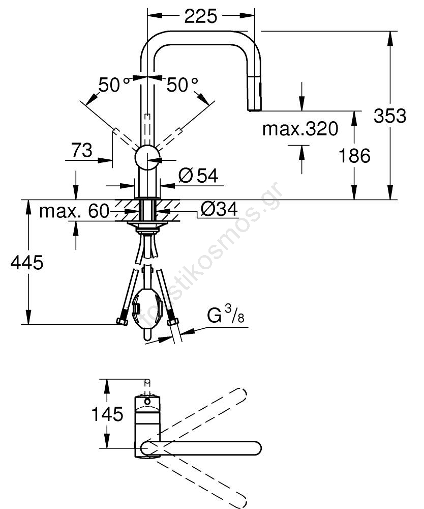 • Ευέλικτοι εύκαμπτοι σωλήνες σύνδεσης για εύκολη εγκατάσταση και προσαρμογή σε διάφορες διαμορφώσεις κουζίνας.