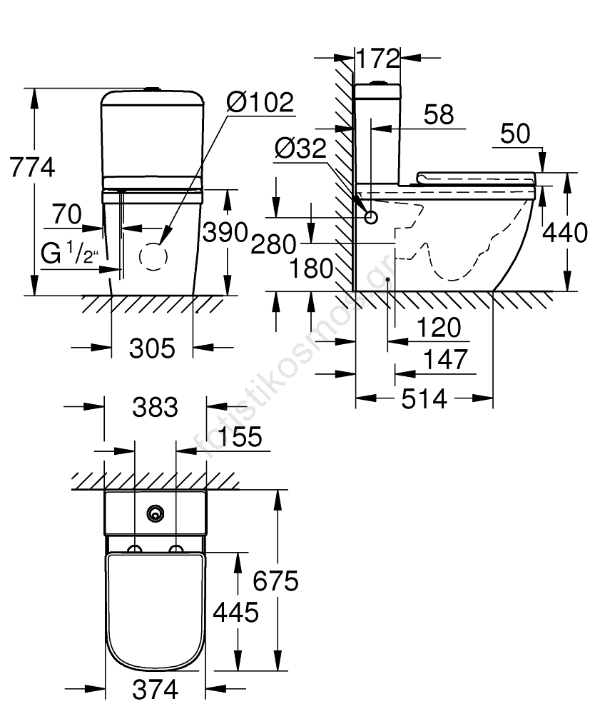 GROHE 39462000 - Σετ WC EURO CERAMIC 67,5 x 37,4 x 77,4 cm κεραμικό/λευκό | Fotisti kosmos