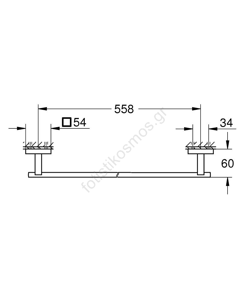 • Μήκος 600 mm με λειτουργικό μήκος 558 mm για άνετο κρέμασμα πετσετών.